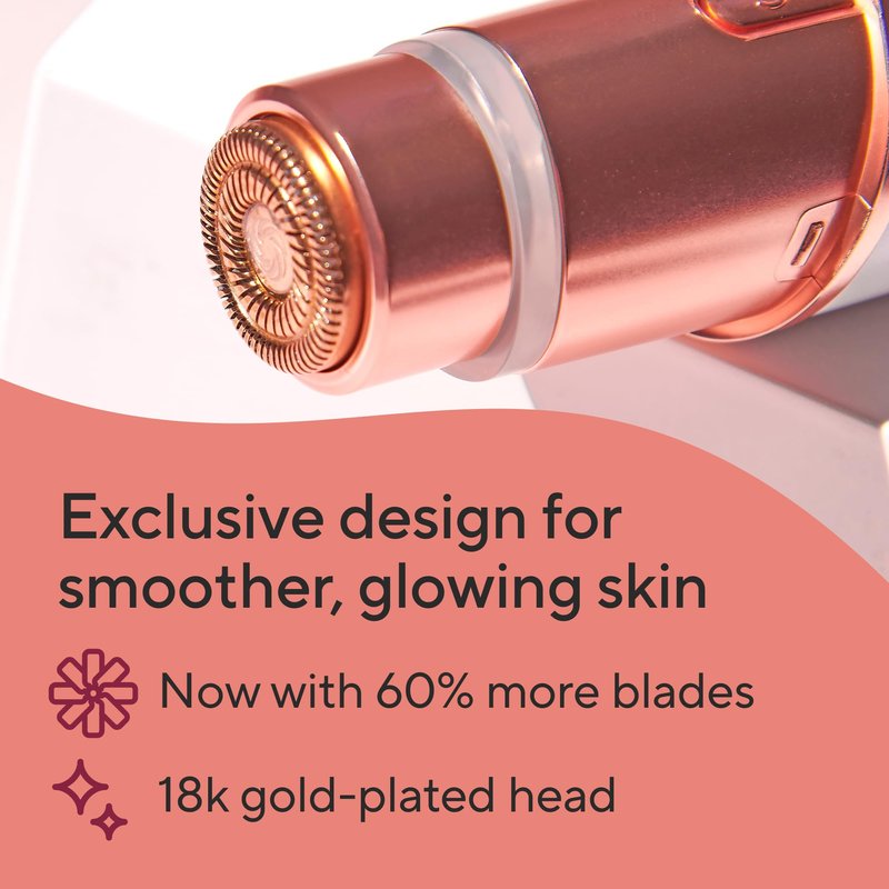 - One Finishing Touch Flawless Facial Hair Remover, Rose Gold stainless steel blade hair remover device for women features 18 karat gold plating and LED light for precision