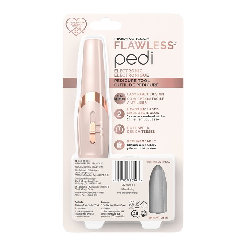 - AT-HOME ELECTRIC PEDICURE TOOL: Finishing Touch Flawless Pedi easily removes calluses, cracked dry skin, and rough areas instantly and painlessly