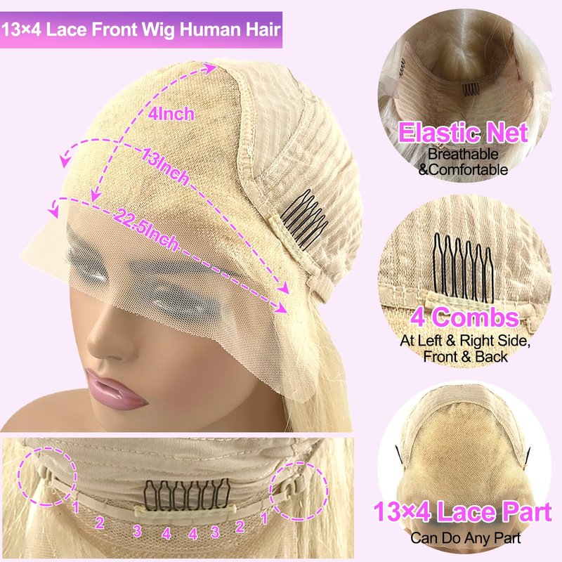 - 【13x4 HD Transparent Lace Front Wigs】:13x4 HD Transparent Lace, Soft ,Invisible, Breathable & Comfortable. Skin Melt Invisible HD Lace Front Wig. Glueless Wigs Human Hair Pre Plucked, Natural Hairline and Bleached Knots. Free Part Lace Parting Space .13X4 Lace Front wigs Human Hair Default Average Cap Size 22.5" Circumferences, Has Two Adjustable Straps With 3 Combs Inside, Fit For Most Of Head. Match Head Perfectly.