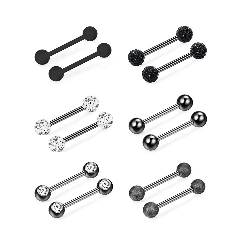 - SIX Different Ball Types Per Pack, Perfect for Nipple and Tongue Piercing. Sparkle Ball in Screw Part, Easy to Screw On and Off, Add a Nice Bling to Your Body Jewelry.