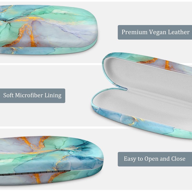 Fintie Hard Shell Eyeglasses Case, Portable Protective Glasses Cover Eyeglass Holder Box with Cleaning Cloth for Men Women, Emerald Marble