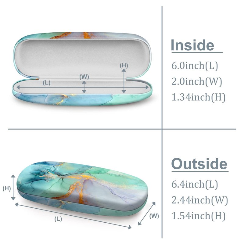 - The hard shell eyeglass case protect your expensive glasses, keep your eyeglasses safe all the time. Case fits for most standard size glasses. And Interior Dimensions: Length 6.0 Inch - Width 2.0 Inch - Height 1.34 Inch / Exterior Dimensions: Length 6.4 Inch - Width 2.44 Inch - Height 1.54 Inch.