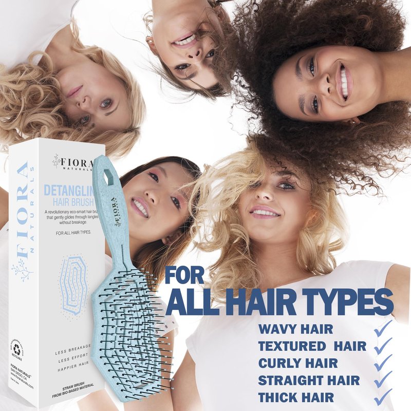 Fiora Naturals Hair Detangling Brush -100% Bio-Friendly Detangler hair brush w/Ultra-soft Bristles- Glide Through Tangles with Ease - For Curly, Stright, Women, Men, Kids, Toddlers, Wet and Dry Hair