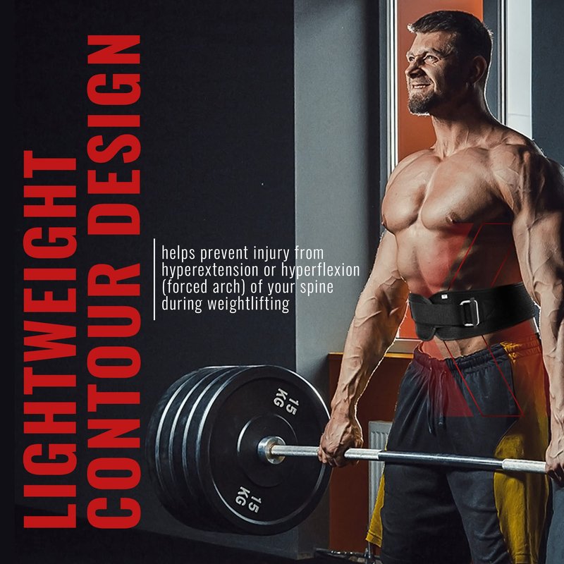 - DESIGNED FOR OPTIMAL COMFORT AND FUNCTION: With its lightweight contoured design, our weightlifting belt helps prevent injury from hyperextension or hyperflexion (forced arch) of your spine during weightlifting. By offering support to your abdominal wall and your lumbar vertebrae, this lifting belt promotes safe lifting technique for Back Squats, Power Cleans, Deadlifts, Clean and Jerks, Overhead Squats and even heavy lifting at work or at home.
