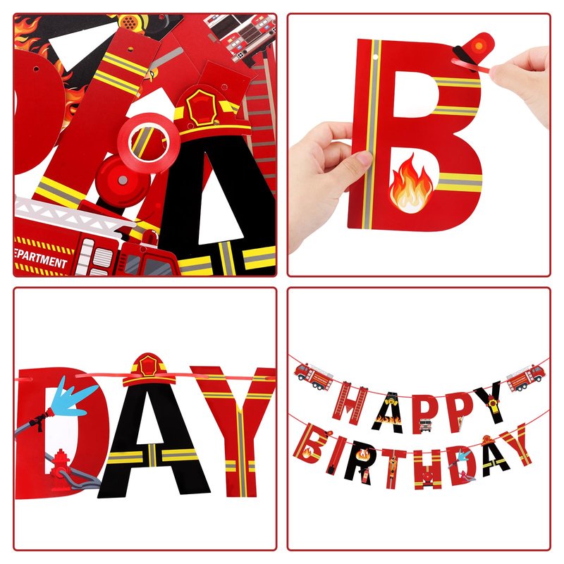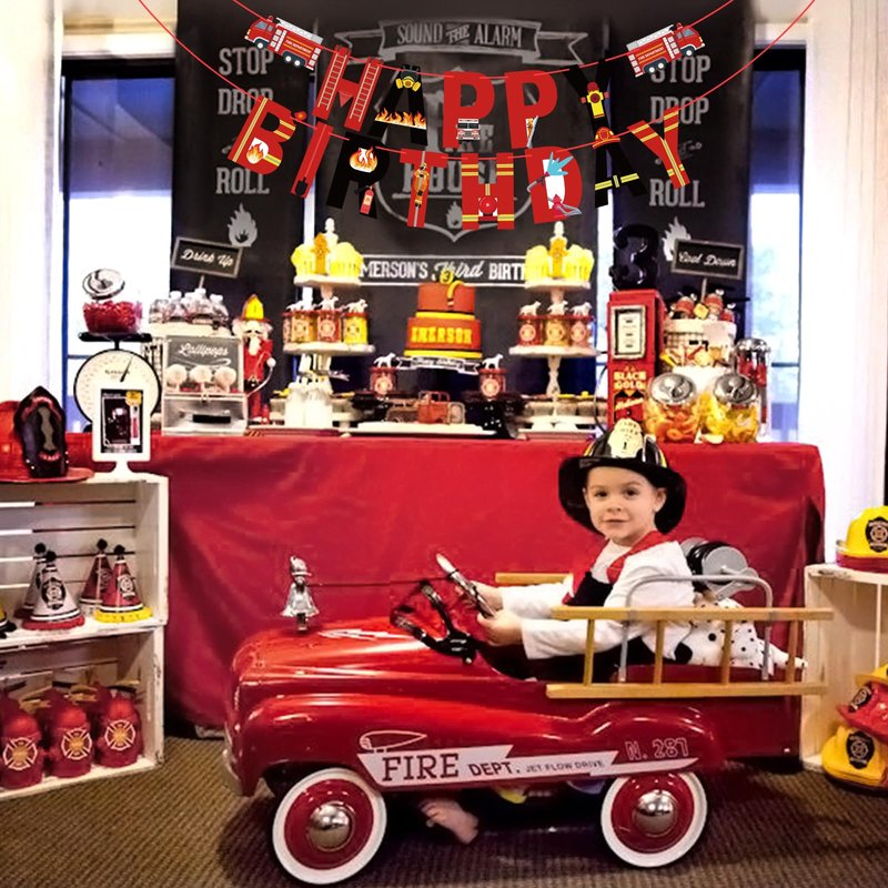 - 🚒What you will receive- This Fire Engine Happy Birthday banner and 1 red ribbon containing fire engines, hard hats, water guns, flames, firefighters and other fire elements fused with Happy birthday to create a fun happy birthday atmosphere for your little firefighter that he is sure to love