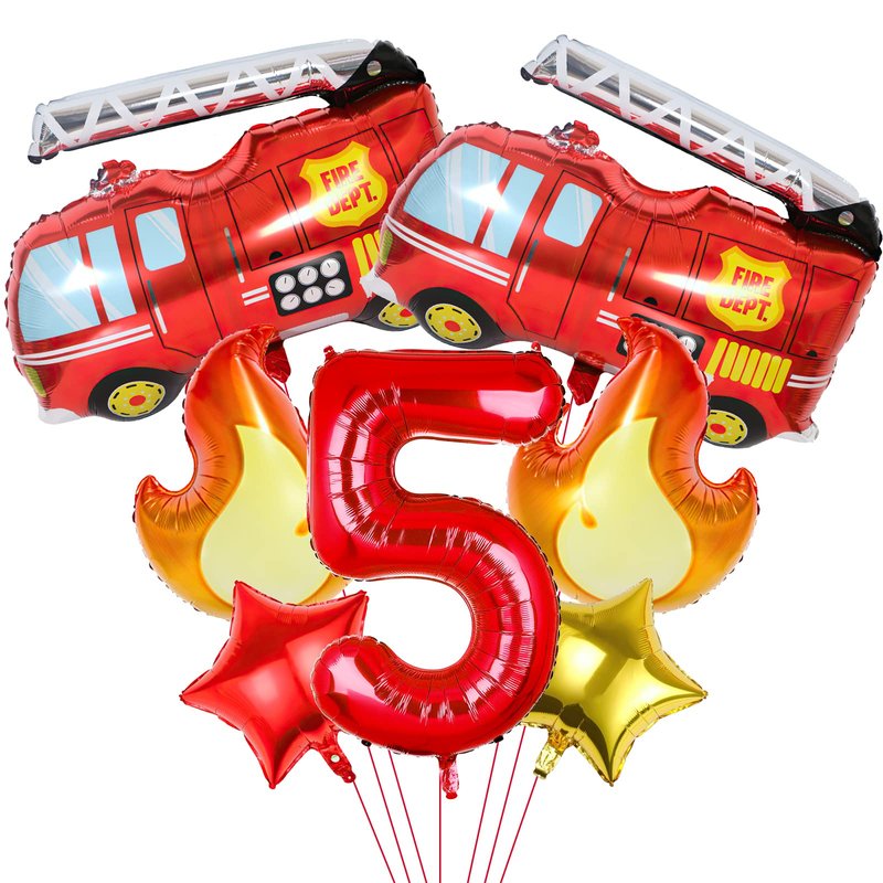 - 🚒2Pcs 32 inch fire truck balloon, 2pcs Large Flame Balloons, 1pcs 40 inch red number balloon, 1pcs 18 inch red star balloons, 1pcs 18 inch gold star balloons, Totally 7PCS. Perfect for any firefighting themed birthday party.