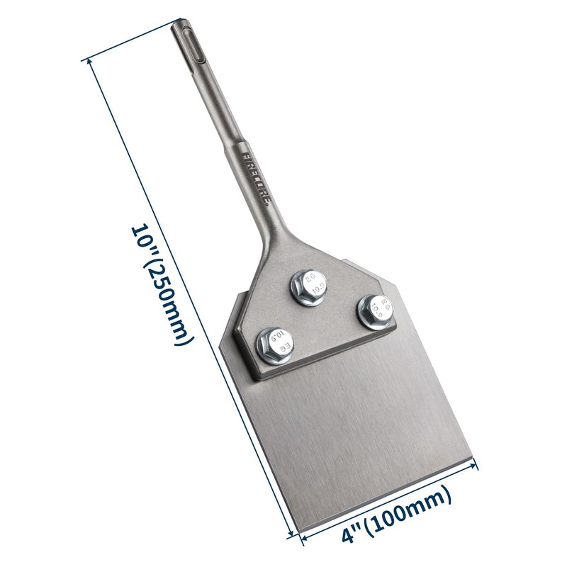 - 4 in. wide blade, 10 in. overall length, the bolts have been assembled in advance. Replaceable 4 inch extra wide blade allows for more upright scraping and removes more thinset per pass.