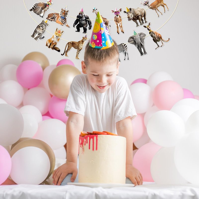 Make your safari or jungle-themed party come to life with our Safari Animal Banner! This pre-strung party animal garland is the perfect addition to your Safari Birthday Decorations, Jungle Birthday Party Decor, or any animal-themed event.