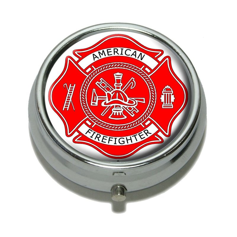 Firefighter Firemen Maltese Cross - American Firefighter - Red Pill Case Trinket Gift Box