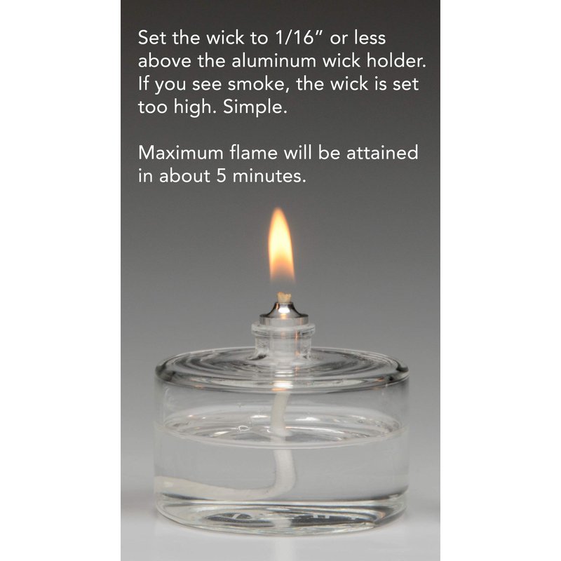- KOSHER, CLEAN BURNING, ODORLESS, SMOKELESS & CLEAR - Be sure to use a NEW wick and keep the height as low as possible, about 1/16” above the wick holder. Maximum flame will be achieved in about 5 minutes. Also NEVER MIX our fuel with another fuel. Be sure to empty the vessel before adding Firefly CLEAN Lamp Oil. It doesn’t have to be dishwasher clean. You can get even the purist fuel to smoke if the wick is too high or has been contaminated.