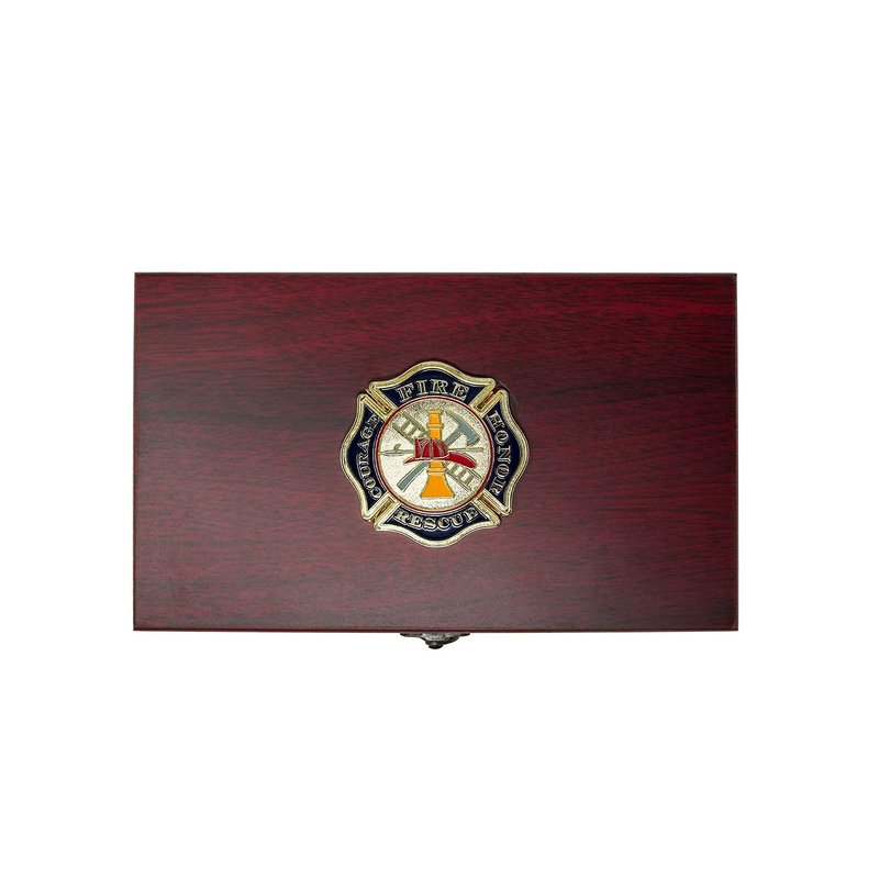 - ROSEWOOD KEEPSAKE BOX: Securely store your playing cards and dice in a beautifully stained rosewood box, adorned with a 3D Metal firefighter emblem. It's not just storage but also an exquisite piece of art, worthy of any mantle or office desk.