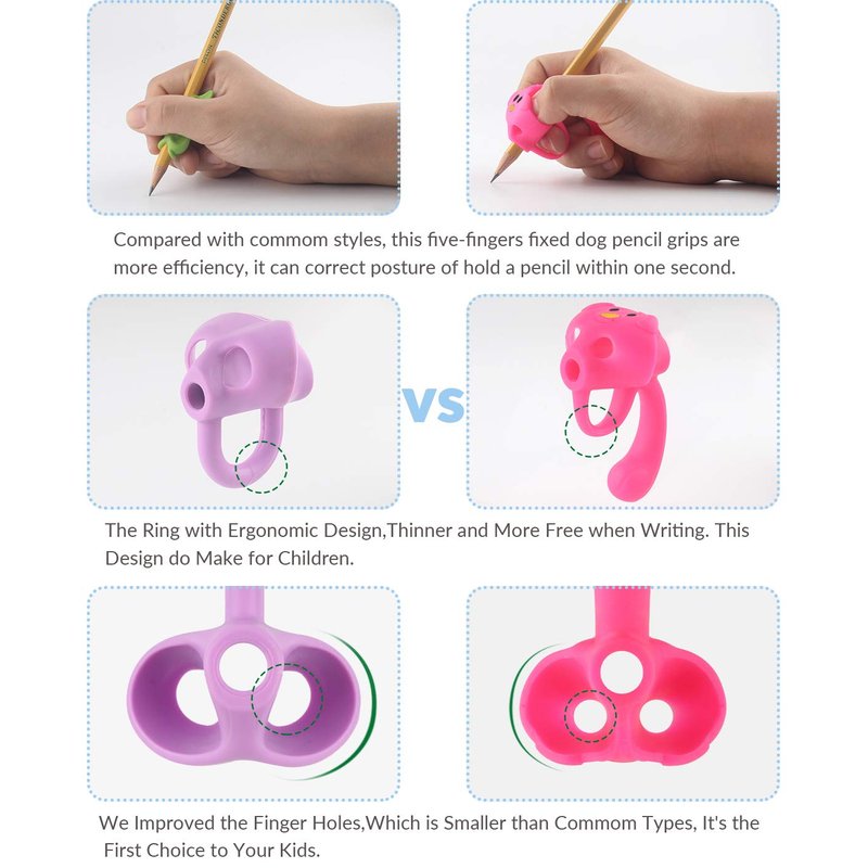 - 【3D ANIMAL CUTE DESIGN】The puppy pencil grips is the first grip shaped in 3D 360°. Cute and colorful puppy design largely arouses kids' interest in handwriting. With this cute pencil correction holder, children's’ five fingers can be entirely fixed within seconds.