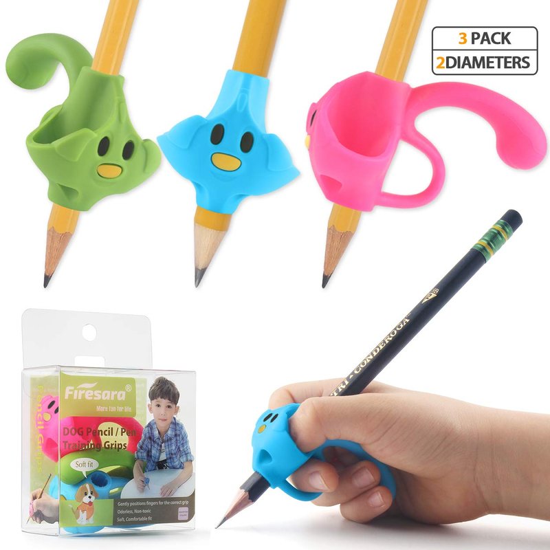Firesara Pencil Grips, 3 Color Dogs, Unisex, Writing Instrument, Kid's Gift