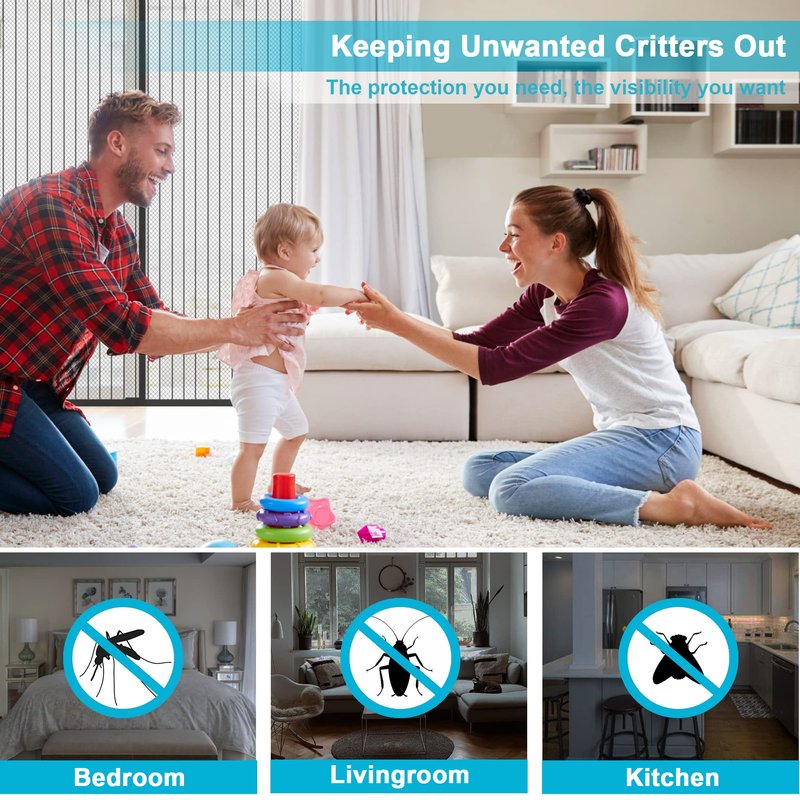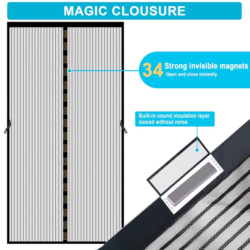 - Enhanced Windproof Design: The windproof sticker hasp and gravity sticks sewn at the bottom can effectively prevent the retractable mesh screen door with magnets from being blown away by strong wind. Excellent workmanship and the heavy duty mesh guarantee magic mesh screen door lasts a long life.
