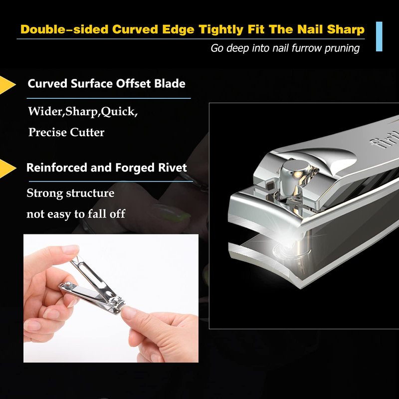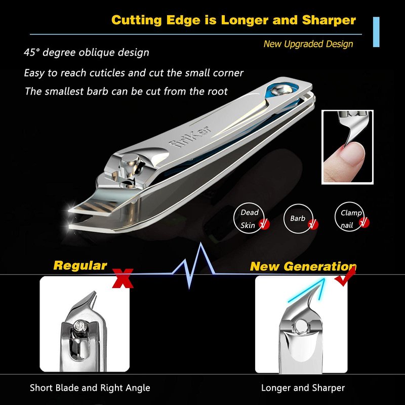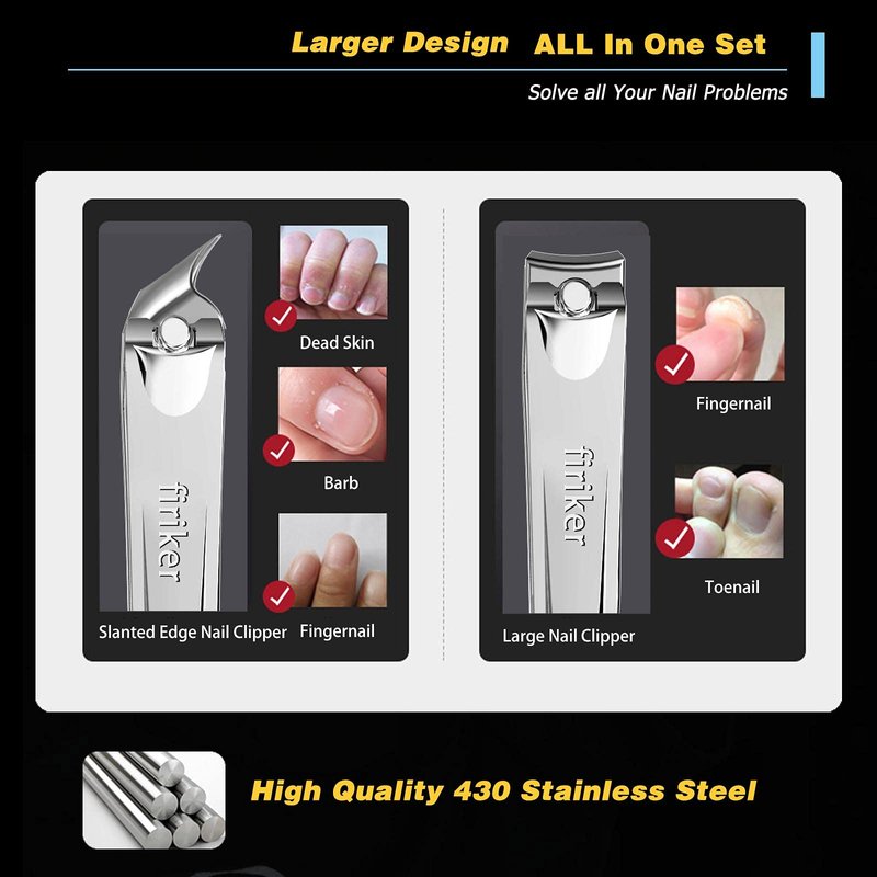 - DIFFERENT CUTTING EDGES: firiker nail clippers have different types of cutting blades, Slanted edge clippers are easy to reach cuticles and cut the small corner of your nails. Which could help you cut the inside growing nails with least pain. the large curved nail clipper for your thick nail and toenails. Built-in embedded metal nail file. meet all your toenail, thick nail, ingrown nail and fingernail cut needs.