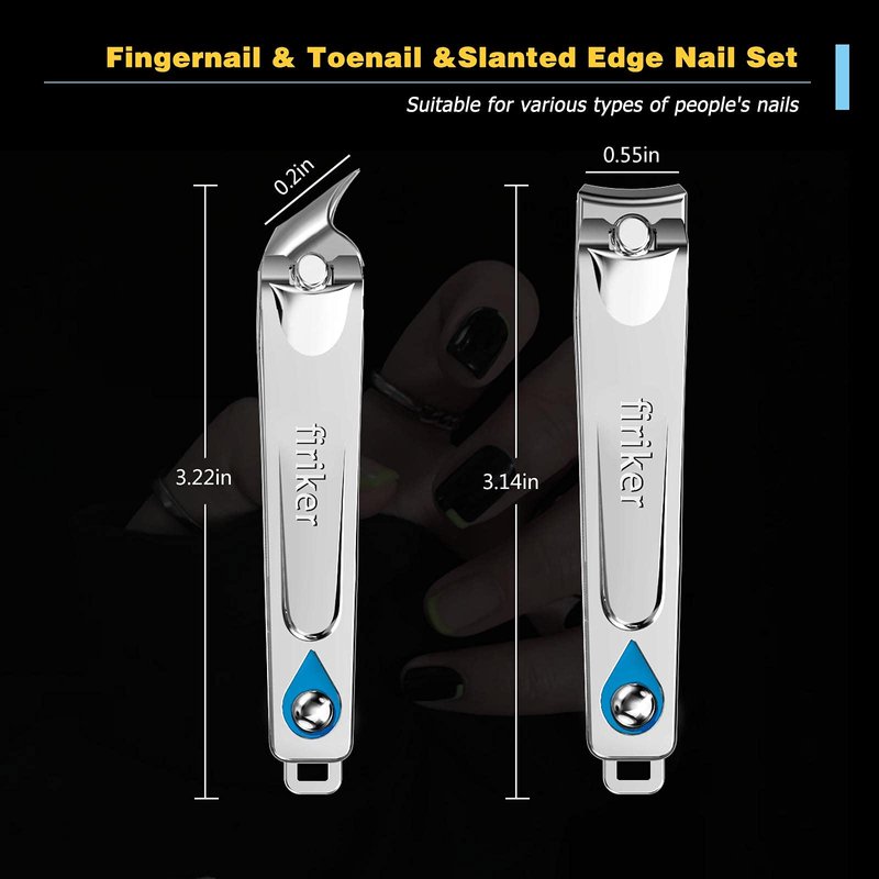 - LARGER NAIL CLIPPER SET: firiKer Fingernail & Toenail &Slanted Edge Nail Cutting Clippers Set, Larger than the same model in the market. 3.4in*0.36in,45° degree oblique design, slant edge ingrown nail clippers can help cut the corner of the toenail to keep it from growing in, Fingernail and toenail clippers with curved blades, cut thick nails smoothly and easily preventing nail splitting.