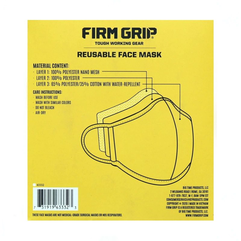 Firm Grip Reusable Face Mask- Tough Working Gear (16 Pack), One Size