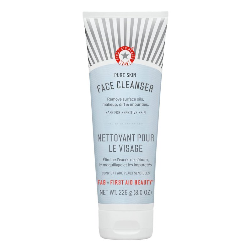 First Aid Beauty Pure Skin Face Cleanser, Sensitive Skin Cream Cleanser with Antioxidant Booster, 8 oz.