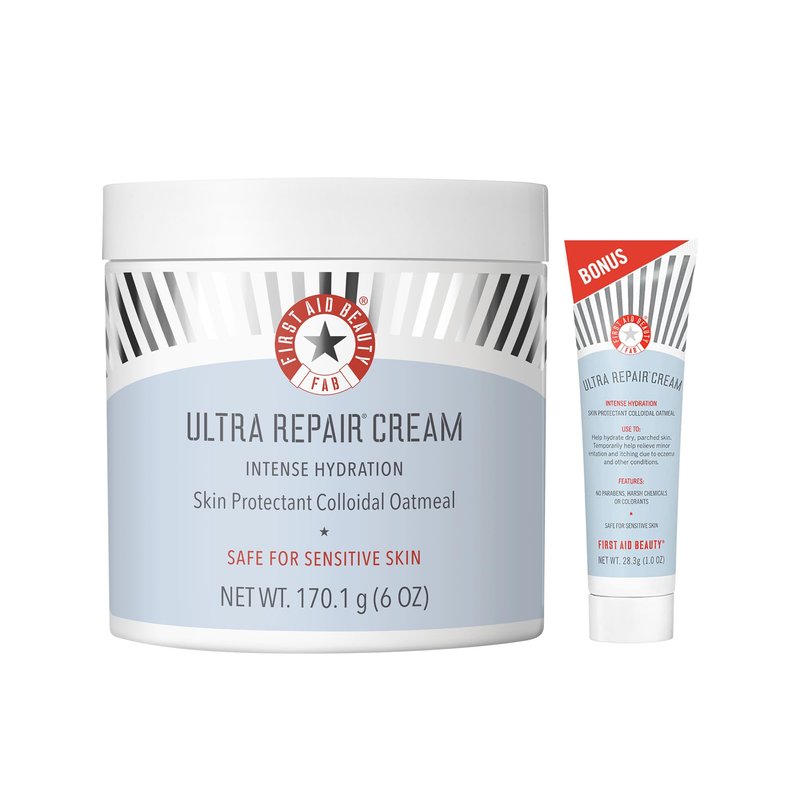 First Aid Beauty Ultra Repair Cream Intense Hydration Moisturizer for Face and Body – Strengthens Skin Barrier + Instantly Relieves Dry, Distressed Skin + Eczema – 6 oz + Bonus 1 oz Travel Size