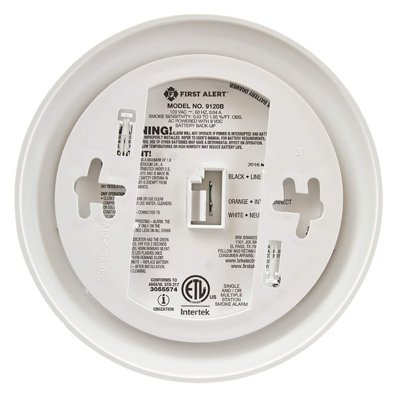 First Alert 9120BFF Smoke Detector, Hardwired Alarm with Battery Backup, White, 1-Pack