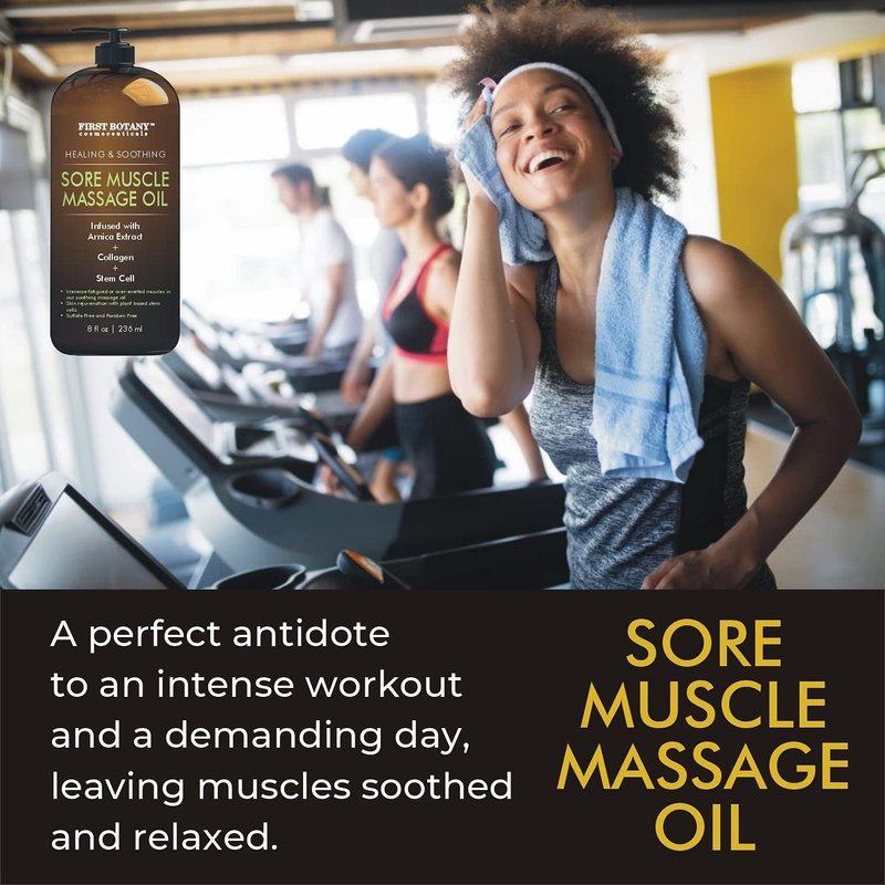 - SPA QUALITY & SPORT LOVERS MASSAGE OIL : Sore Muscle Massage Oil is crafted with a unique blend of 100% natural quality oils to help soothe and melt away tension with tired and achy muscles. MADE IN USA. A must for any sports enthusiast.