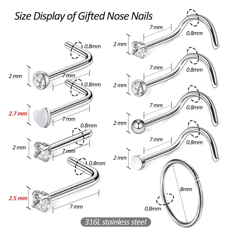 - 【High Quality Material】- Made of surgical stainless steel,safe and hygeian piercing nose stud,allergy free nose ring piercer