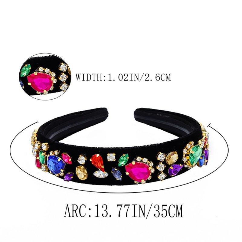 Firuilo Baroque Colorful Headband Crystal Rhinestones Hairband with Beaded Hair Ties Bejeweled Wide Head Band for Women and Girls