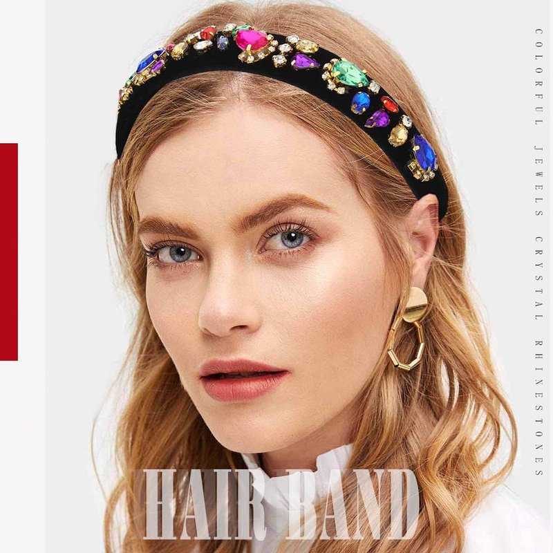 - Black headbands made of high quality colored and different shapes rhinestones,black velvet and sparkle beaded,lightweight and comfortable to wear.