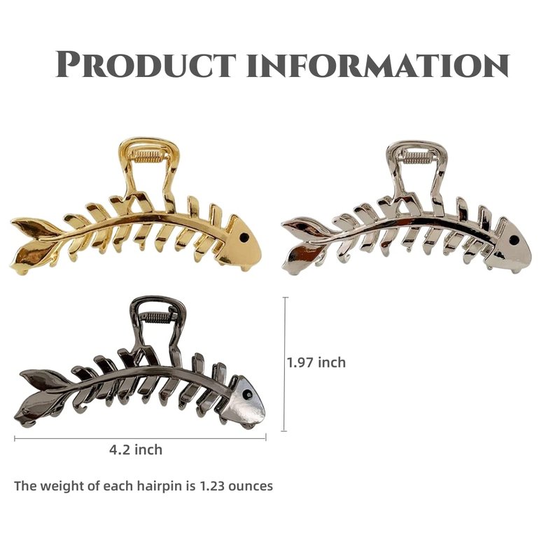 You can choose hair catch clip from three different colors of fish bone designs. Suitable for various shapes and designs for different occasions to make your hair beautiful. The gold fish bone shape hair clip for styling is made of the popular shape and material, so you can choose the color you like.