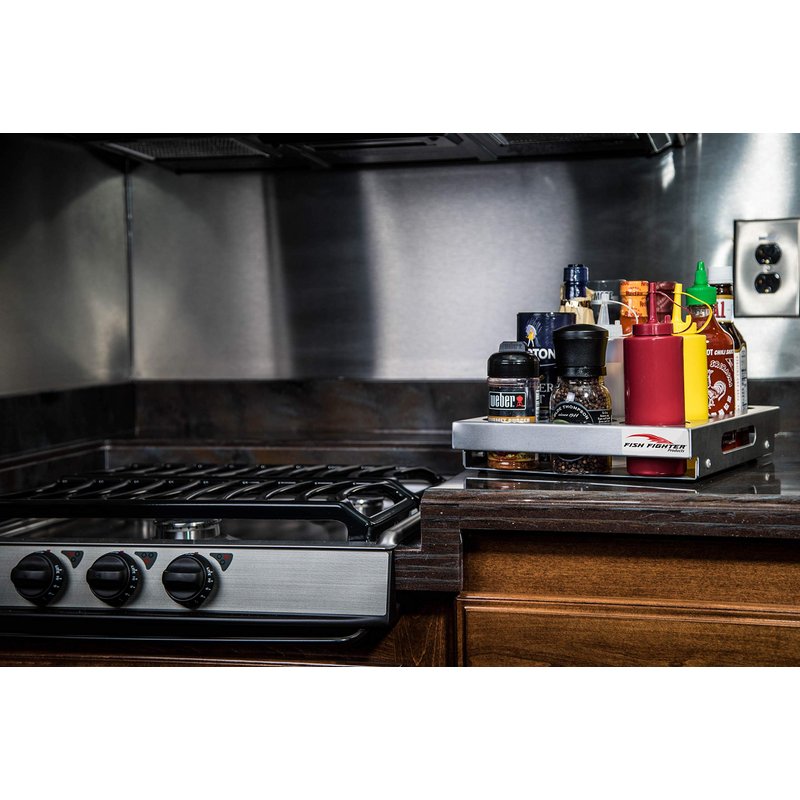 Tired of opening your RV Fridge, only to find all your drinks have fallen over in a jumbled mess? Fish Fighter Products has solved this problem with the 12 Pack Drink Rack. This drink rack works perfectly in your RV fridge to keep drinks from falling over when you’re traveling down the road. It holds bottles of water, coffee cups, drink cans, and many other beverages. The 12 Pack Drink Rack works perfectly as a serving tray to serve coffee with. The rack is made from durable aluminum, and comes with anti-skid/anti-mark pads on the bottom and back. This product was designed by us, and built right here in Idaho.