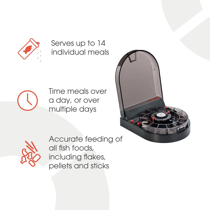 Fish Mate F14 Automatic Fish Feeder for Aquarium or Fish Tank for Vacation or Daily Use - Sits on Hood of Tank or Will Clip to Side with Included Clamps - Serves up to 14 Meals