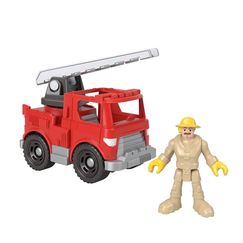 - Set includes 1 push-along fire truck and 1 firefighter figure to “drive” the action