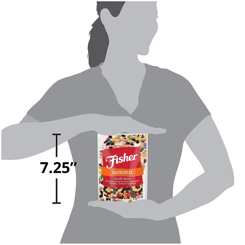- Contains 1- 4 Ounce resealable pouches of Fisher Snack Summit Trail Mix