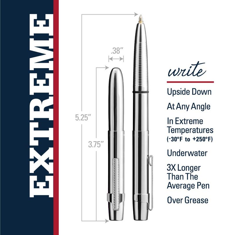 Fisher Space Pen Bullet Pen - 400 Series -X-Mark Flat Cap Chrome w/ Clip - Gift Boxed