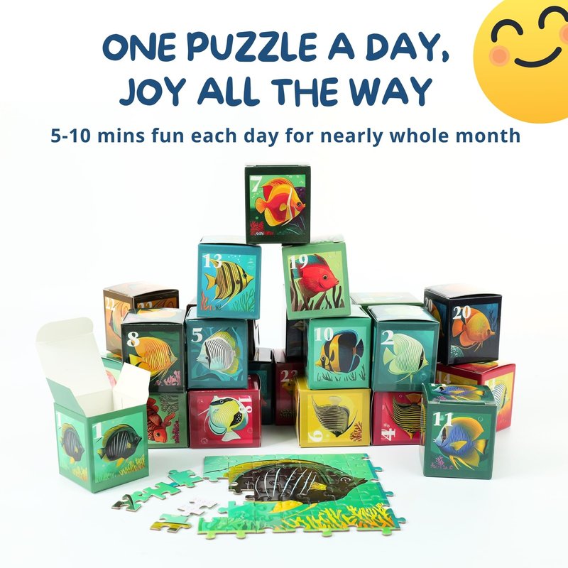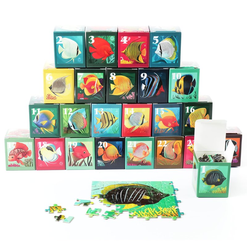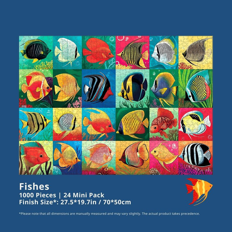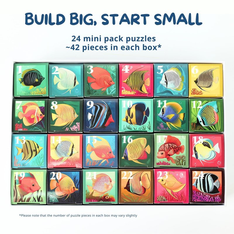 Fishes, 24 Mini Pack Kids Education Puzzles, 1000 Pieces Puzzles, Advent Calendar 2024, Individual Packed Puzzles, Kids Puzzles, Family Game Nights, Finish Size 27.5 * 19.7 in