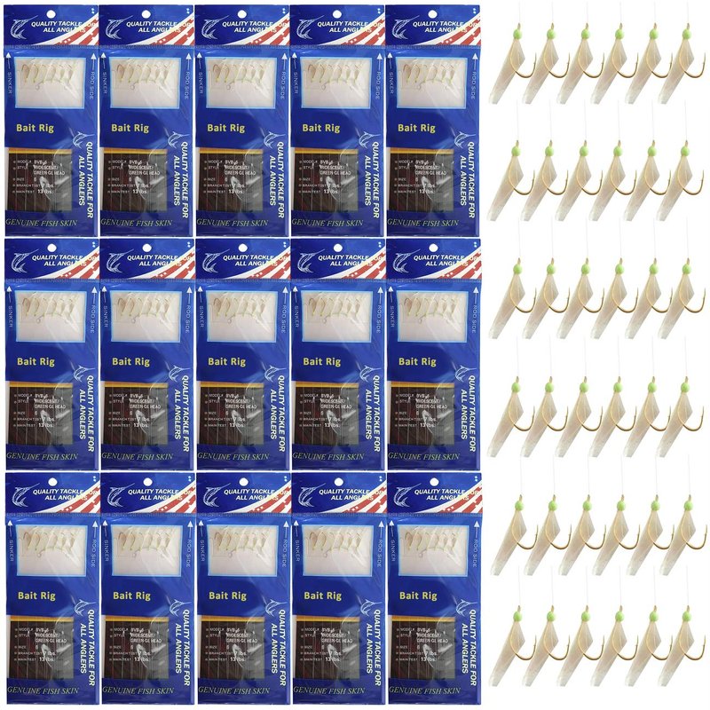 Fishing Bait Rigs Set 15 Packs Saltwater Fishing Lures Rigs with Sharp Hooks Real Fish Skin Beach Pier Sea Surf Fishing Rigs Cod Herring Lure Hook Rigs Type B 8#