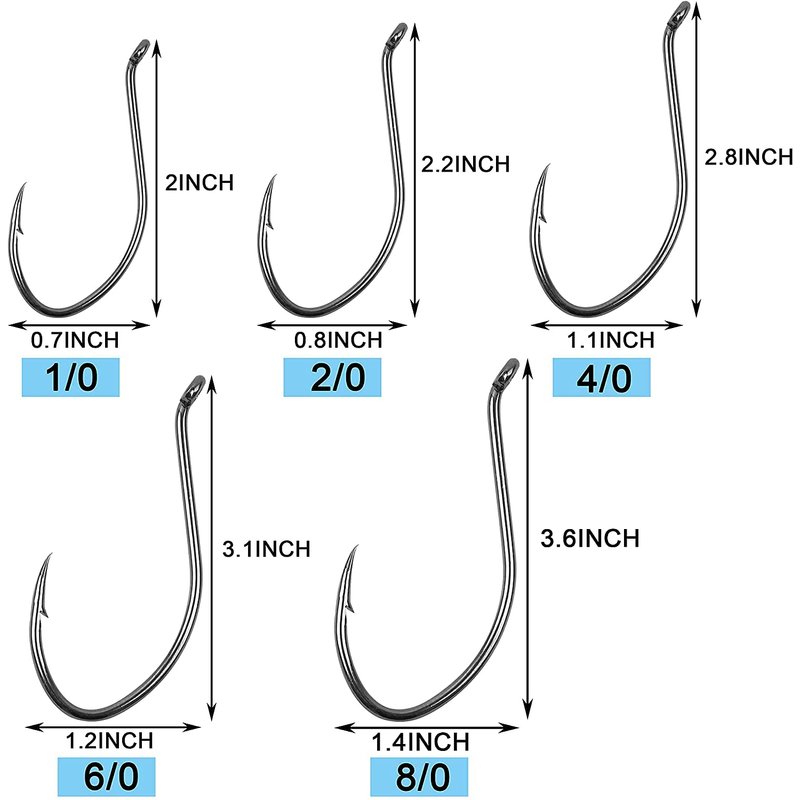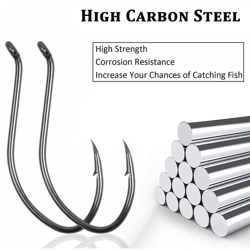 - Material - Catfish offset hooks are created from high carbon steel, chemically sharpened.