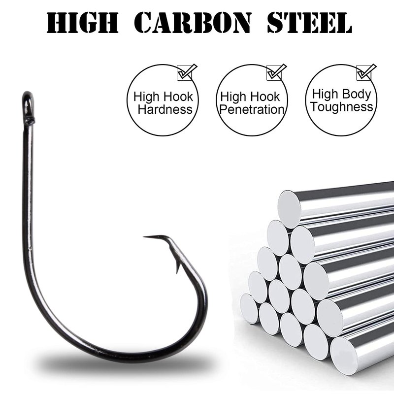 - Quantity: 50/150pcs fishing hooks for each size. Size: 1/0, 2/0, 3/0, 4/0, 5/0, 6/0, 7/0, 8/0, 9/0 you can choose