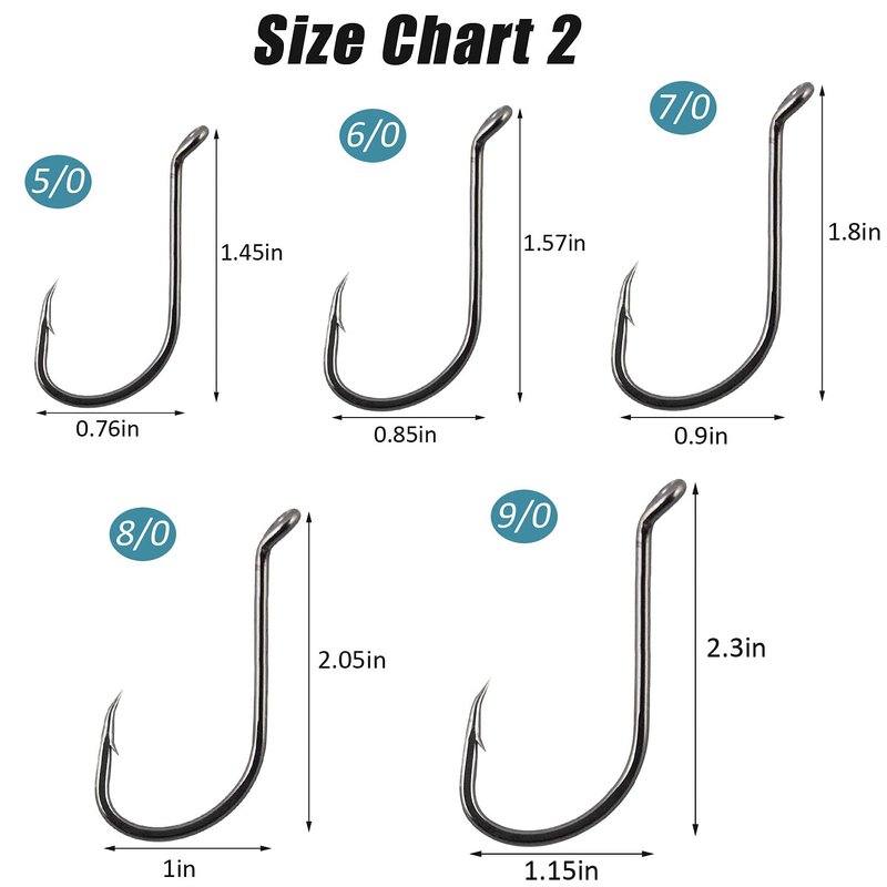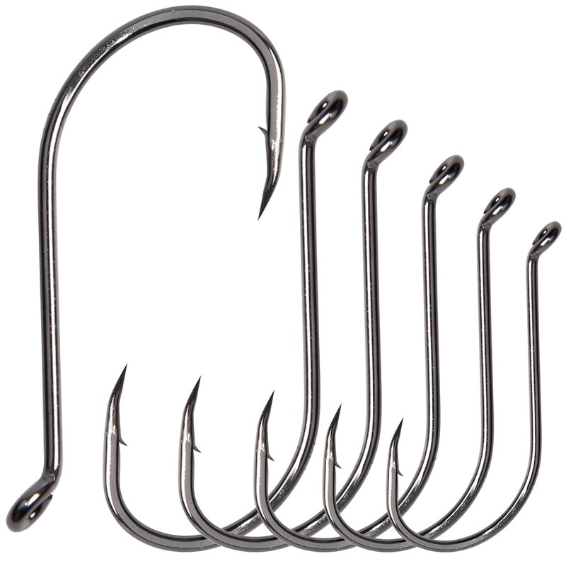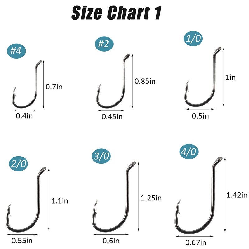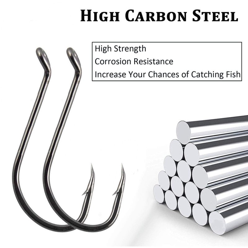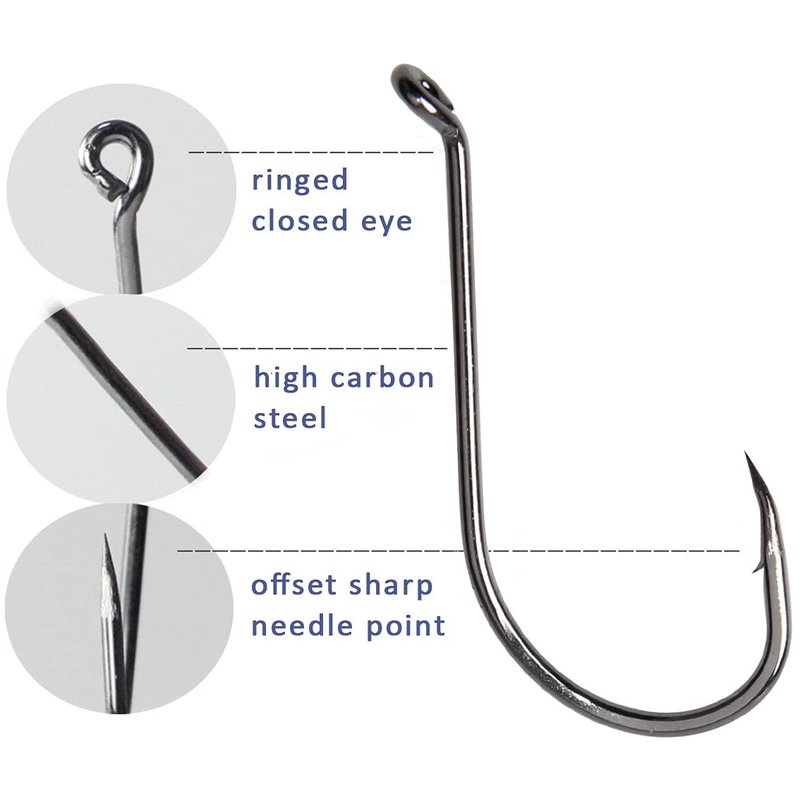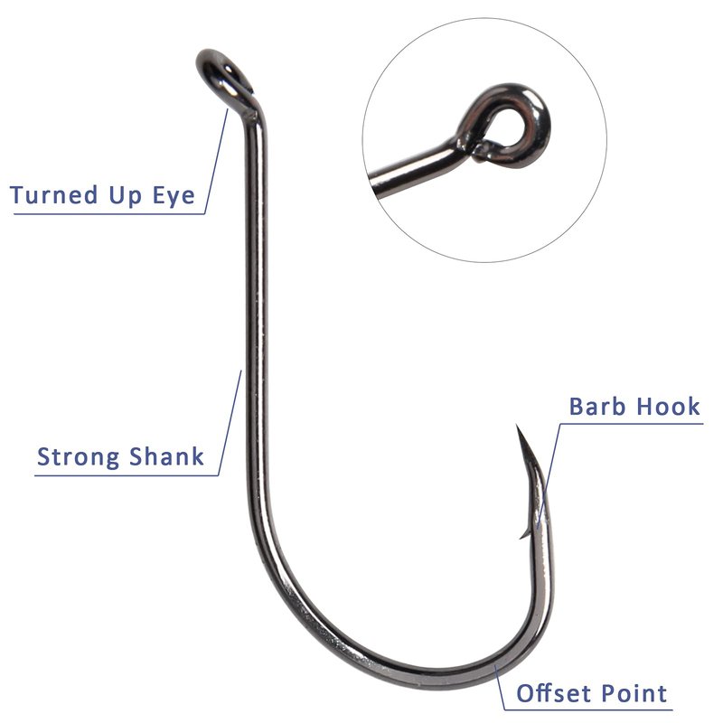 - Special Design - Sharp strong hooks, off-set point, barbed design, needle point, black nickel coated, turned up eye fishing hooks.