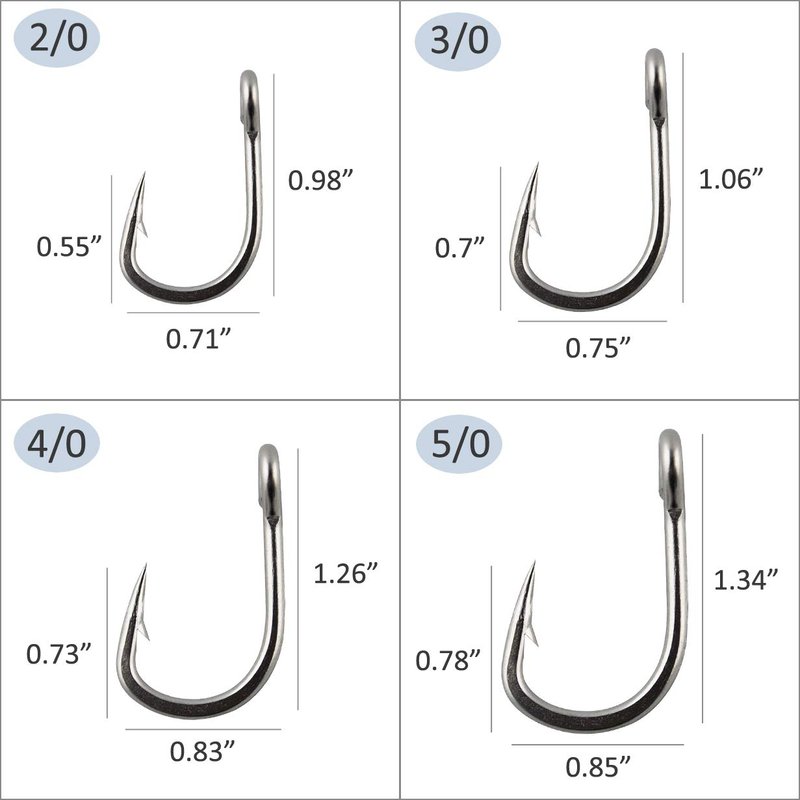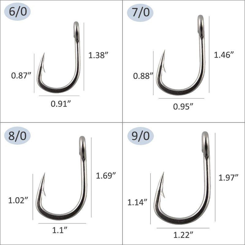 - MULTI SIZES - 2/0, 3/0, 4/0, 5/0, 6/0, 7/0, 8/0, 9/0, 10/0, 12/0. Different sizes to choose, meet your different fishing need.