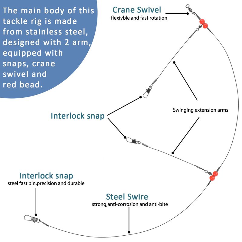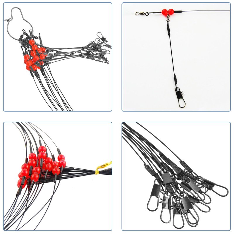 - PACKAGE CONTENT: 12PCS stainless steel fishing wire leaders with 1arm / 2 arm, equipped with snaps, swivels and red beads.