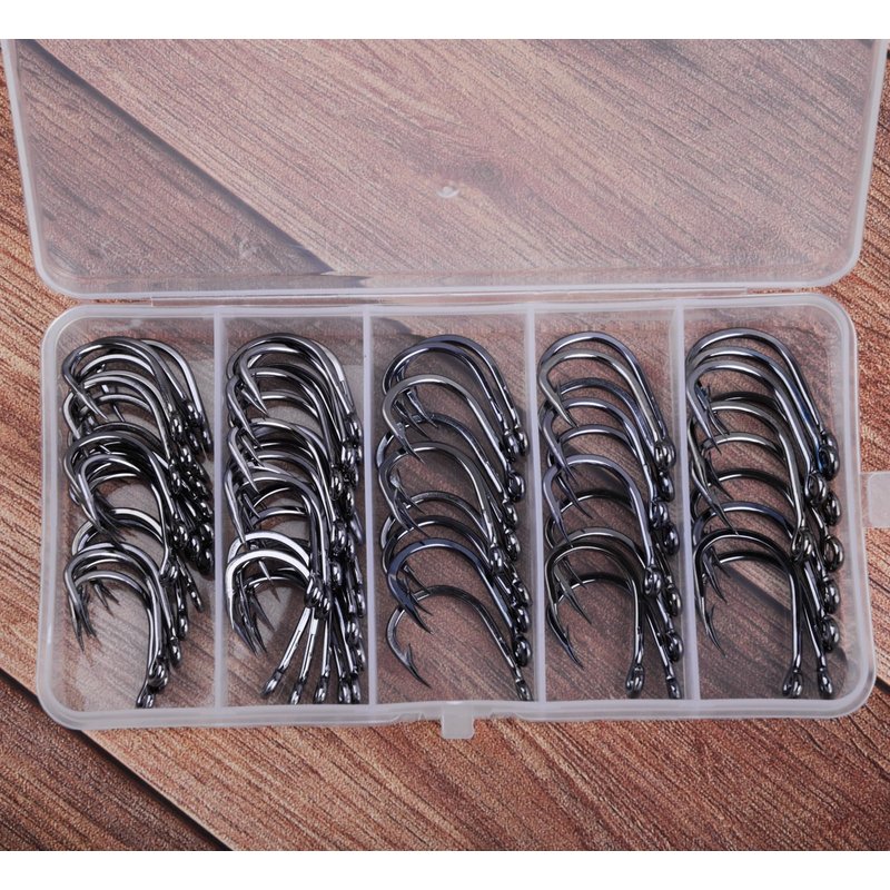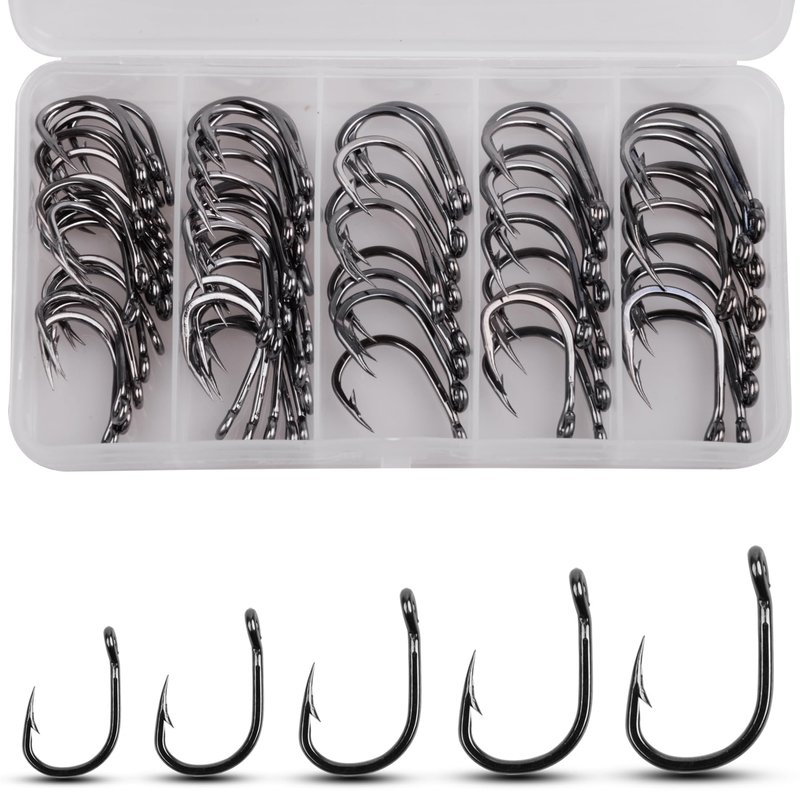 - Package – Include 1/0-20pcs 3/0-15pcs 4/0-15pcs 5/0-10pcs 6/0-10pcs, total 70pcs with a hard reusable plastic box.