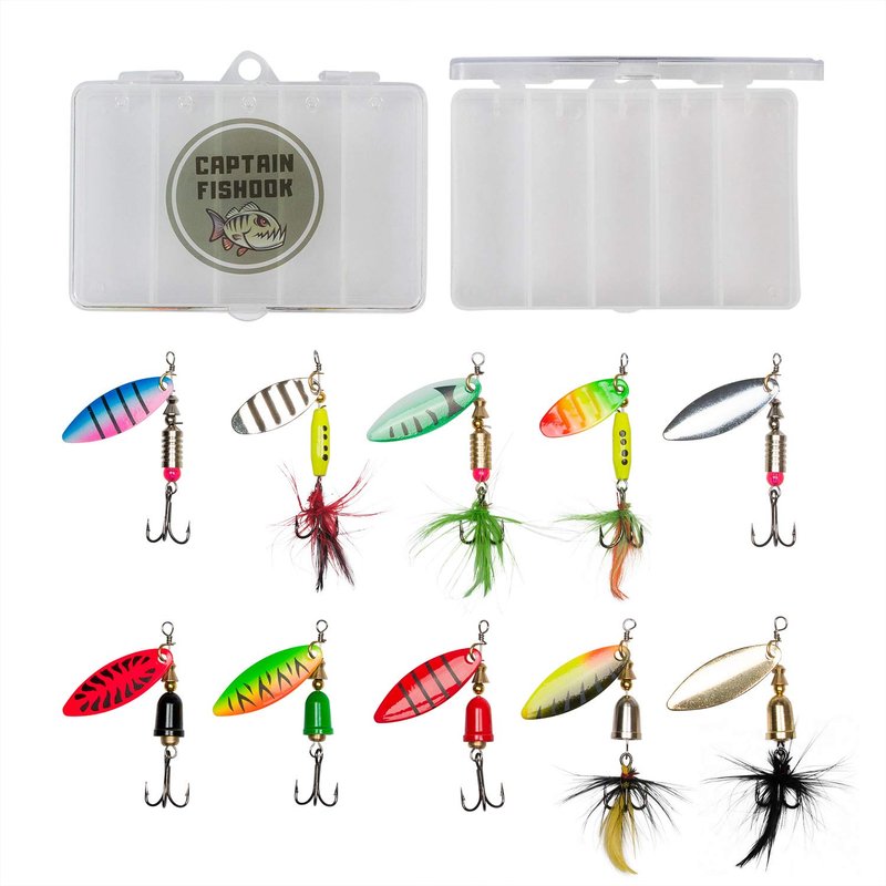 - COMPLETE KIT: This fishing lure set includes 10 spinnerbaits and 2 sturdy tackle boxes for easy and practical storage. With a smart hook closing design, you won’t have to worry about your lures being scattered all over your backpack!