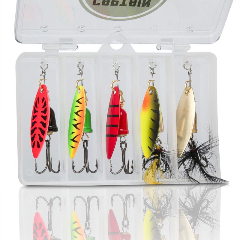 The Captain Fishook fishing lure kit is definitely a must for every self-respecting fisherman who understands the importance of professional, quality lures when it comes to results. Whether you’re a fan of fresh or salty water, boat, lake, or rock fishing, these spinnerbaits are an excellent choice due to their wide range of captures, including trout, bass, salmon, northern pike and other larger fish species.