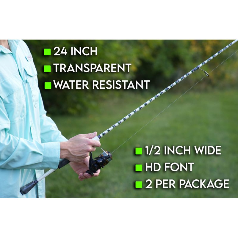 Fishing Pole Measuring Tape Sticker, 24 Inch Ruler Decal to Attach to Fishing Rod (2 Pack)