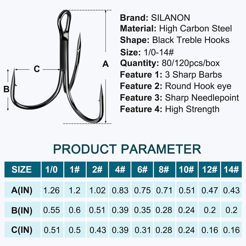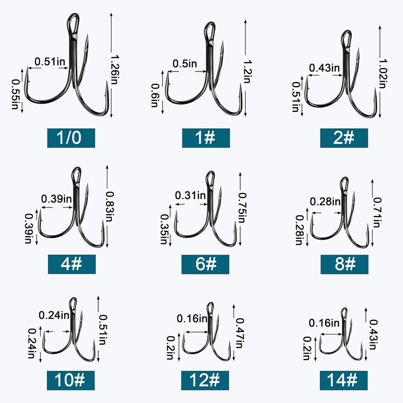 - *HIGH QUALITY: Fishing treble hooks are made of high carbon steel with black nickel coated, anti-rust, premium weld, high strength and ultra-sharp