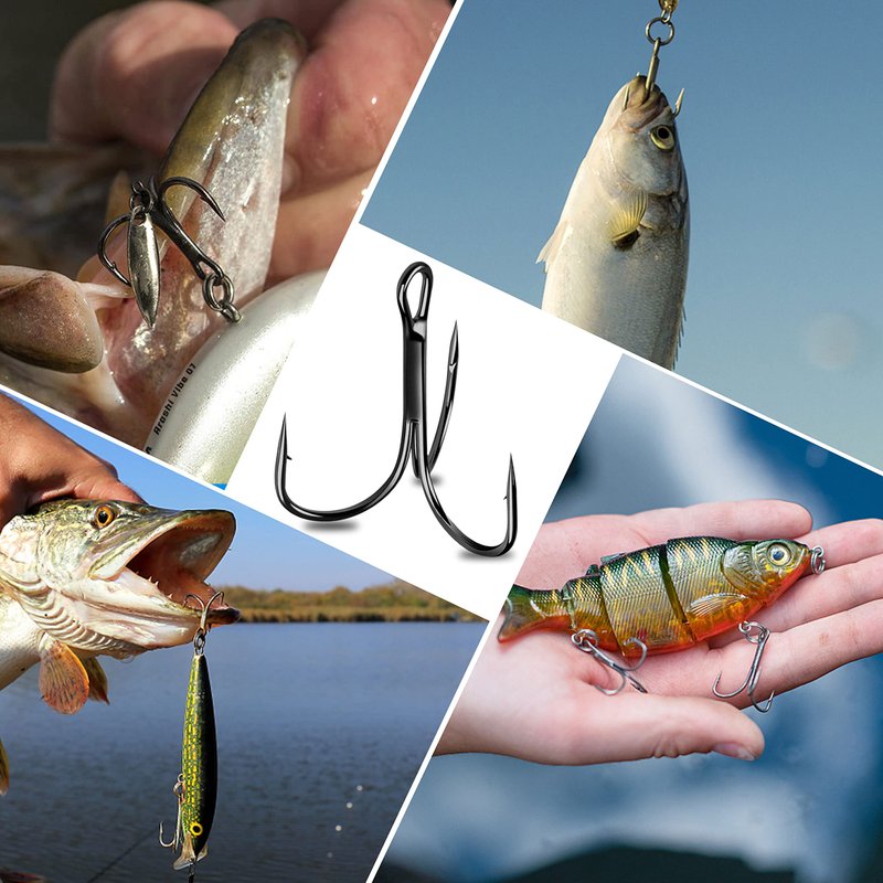 - *CLASSIC SERIES: Black triple hooks come with ultra-sharp needle points, curved hook back and barbed design, quick penetration, effectively prevent fish from escaping