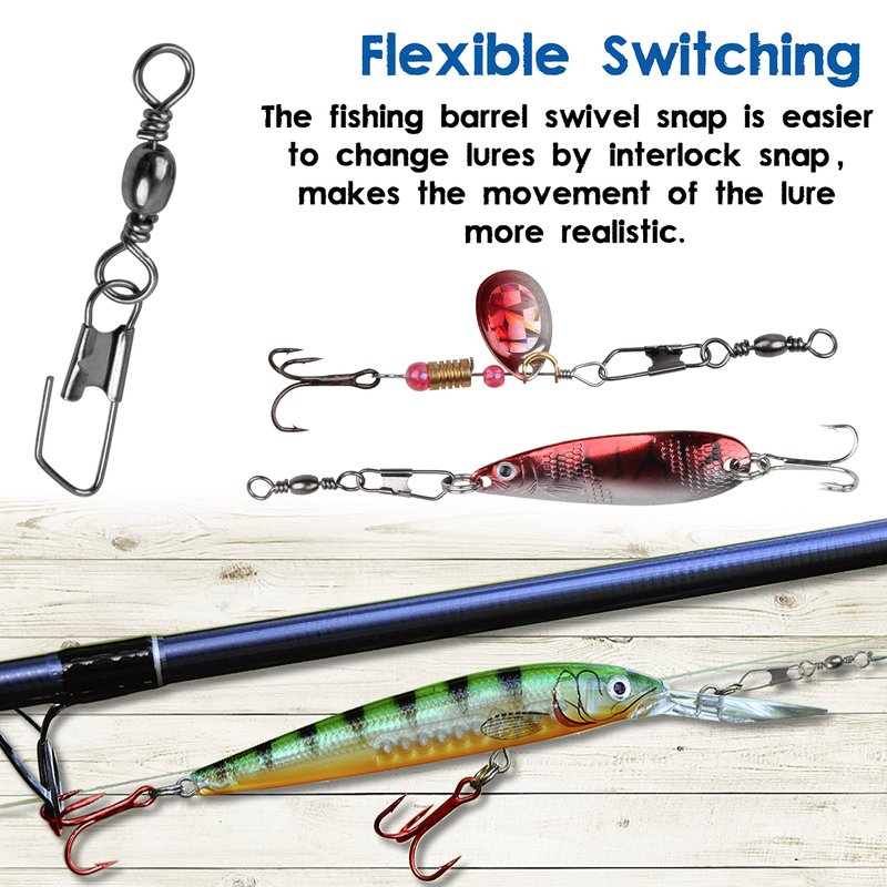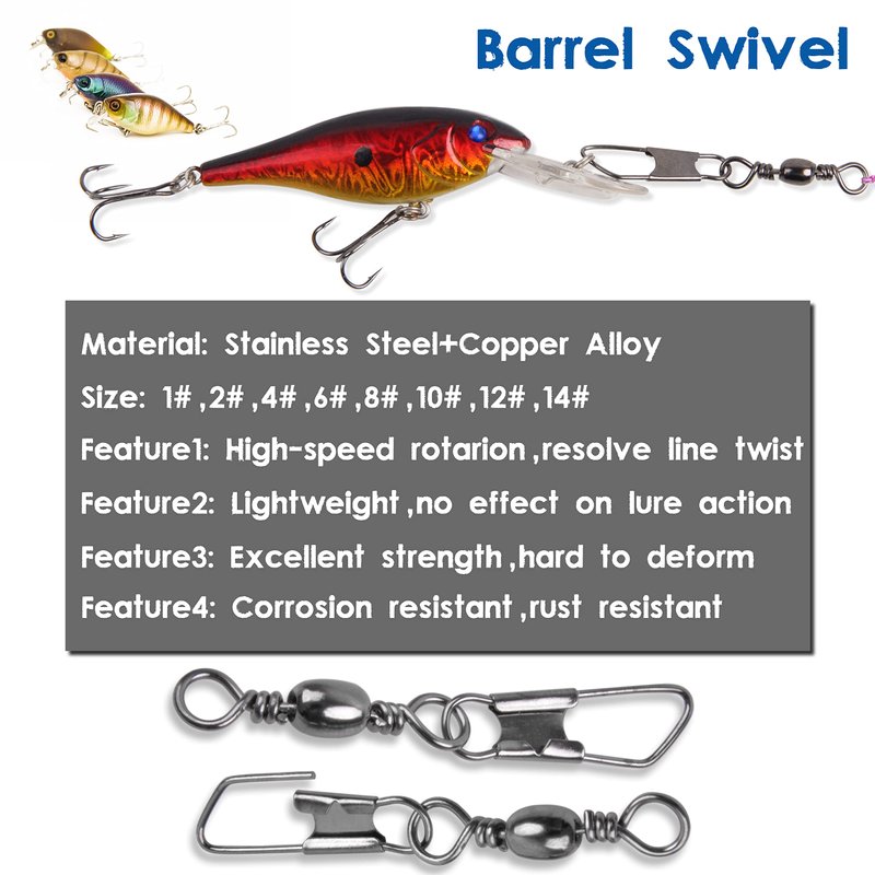 - 【SAFETY SNAP】Fishing Barrel Swivel Snap is simple designed for easy operation, very light with strong pull.
