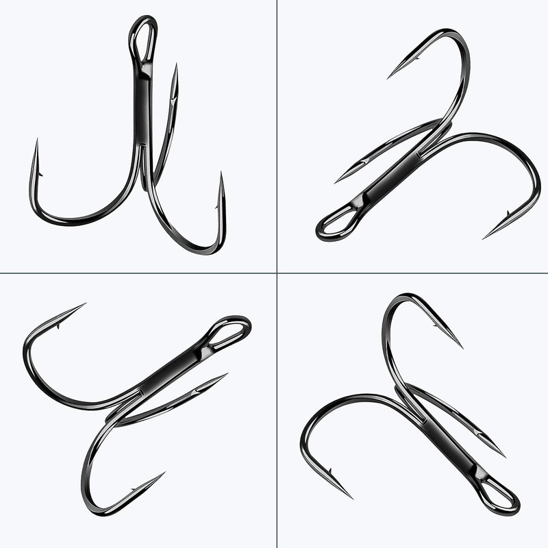 - 【DURABLE】Treble hooks made of high carbon steel with black nickel plated coating on the surface, which has high strength and good corrosion resistance. Suitable for saltwater freshwater sea river and lakes.