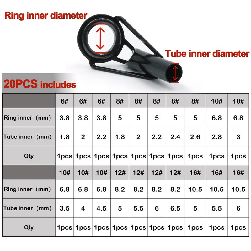 - Please measure the size of the rod tip you need to repair before purchasing.Bring the old rod back to life! Wonderful rod tip tops for fishing lovers! If you have any questions about the product, please feel free to contact our customer service. We are always here to help you!